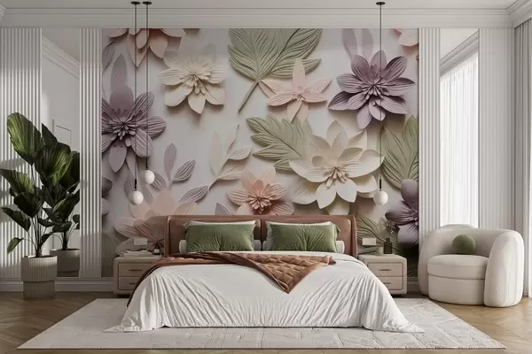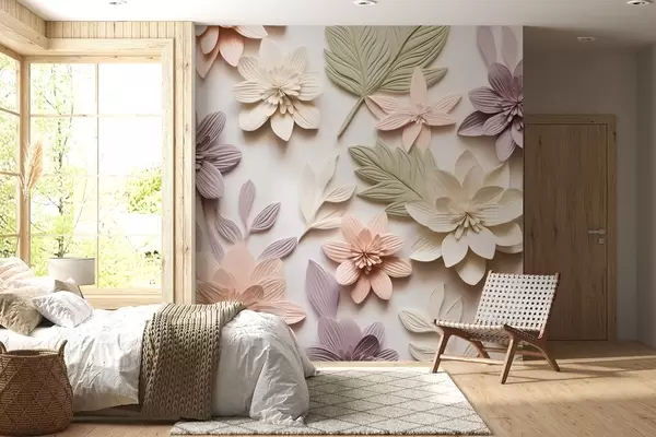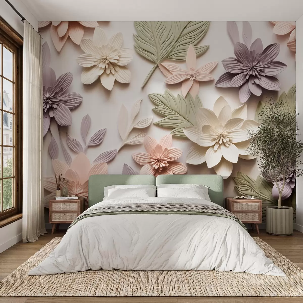 Papel tapiz relieve floral en 3D en forma de composición de papel Nr. w08958