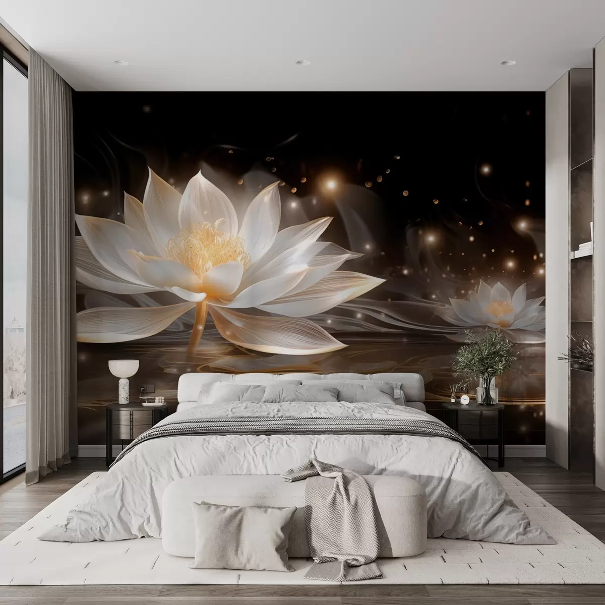 Papel tapiz Elegantes nenúfares blancos sobre agua oscura Nr. w09021
