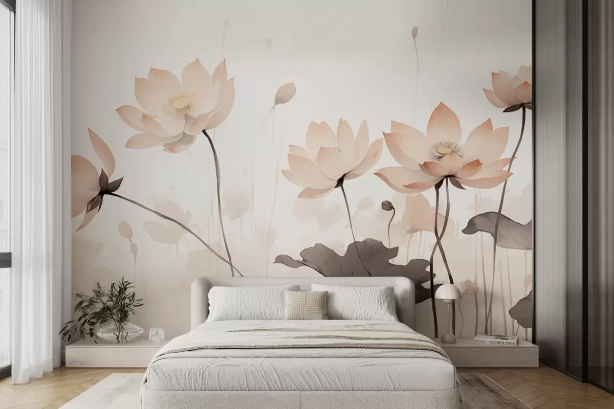 Papel tapiz Nenúfares en delicados tonos claros en estilo acuarela Nr. w09035