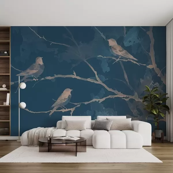 Papel tapiz Pájaros en las ramas de los árboles en estilo acuarela Nr. w09064v1