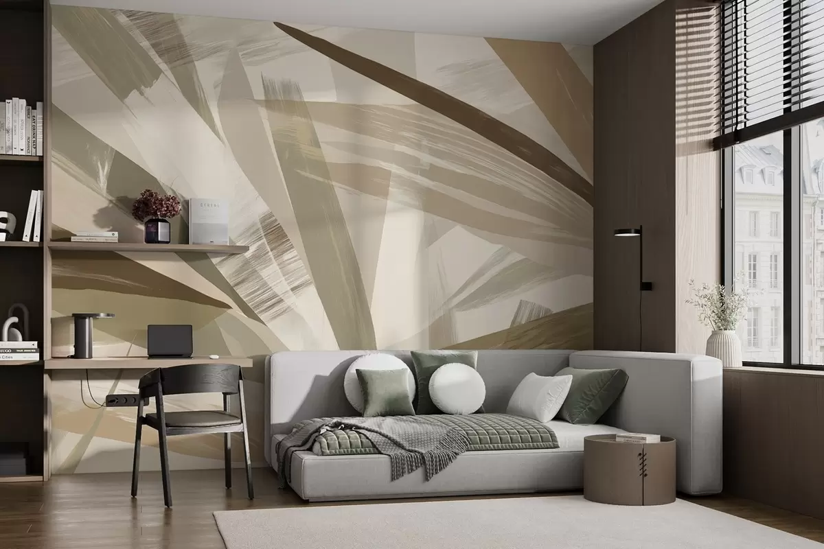 Papel tapiz Hojas abstractas en tonos verdes y beige Nr. w09091