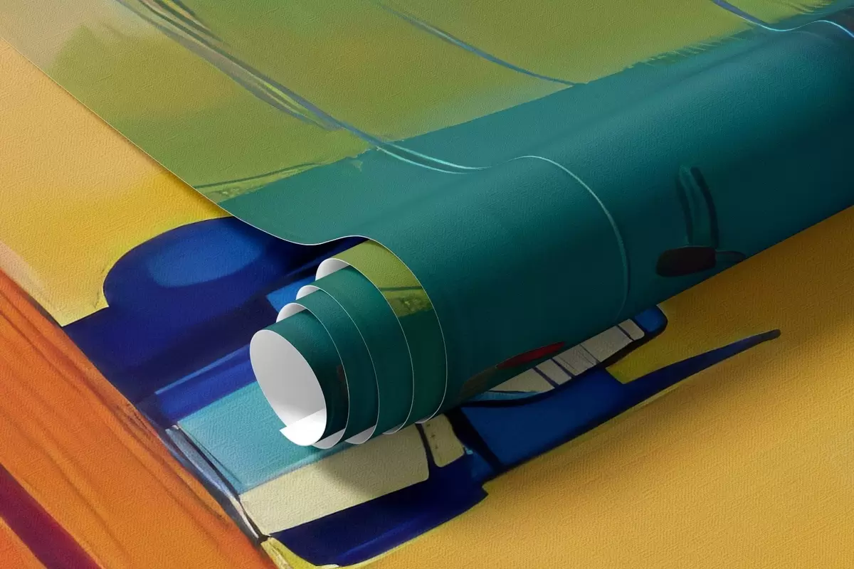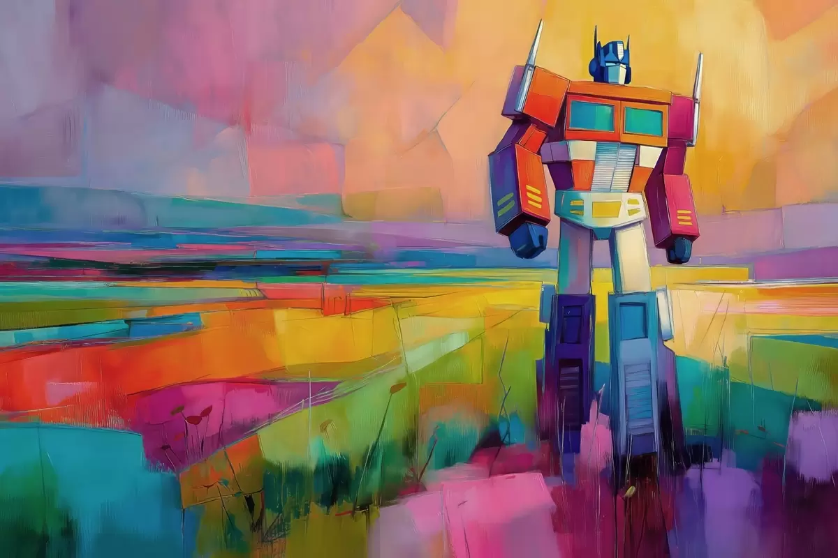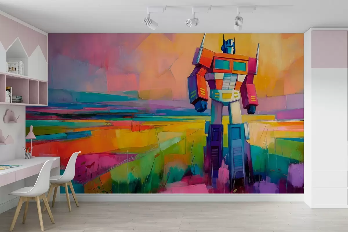 Papel tapiz Robot contra un paisaje abstracto brillante en estilo de pintura al óleo Nr. w09096