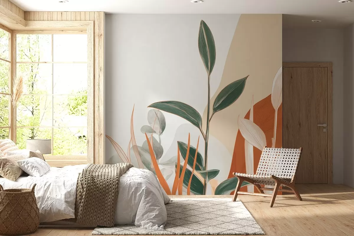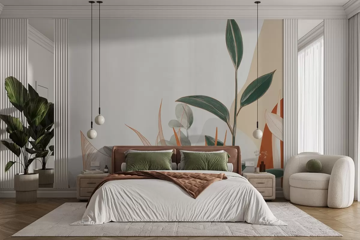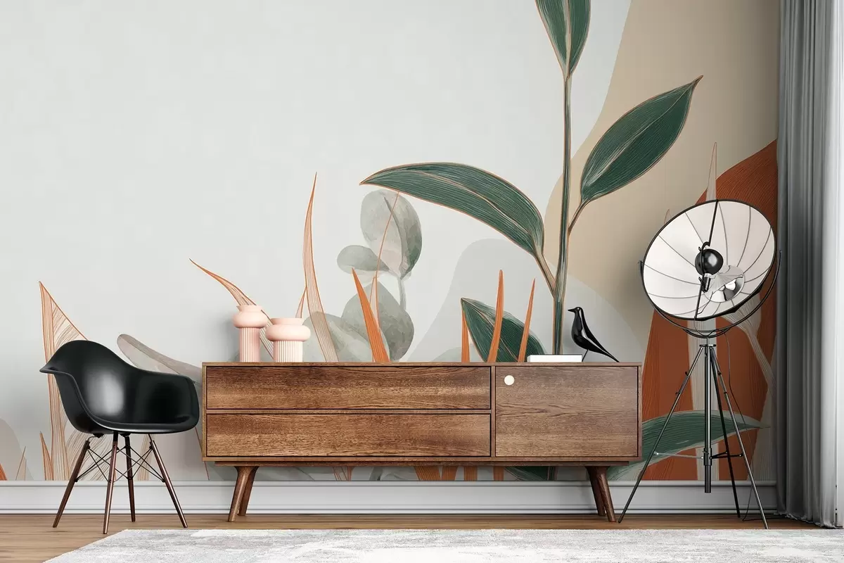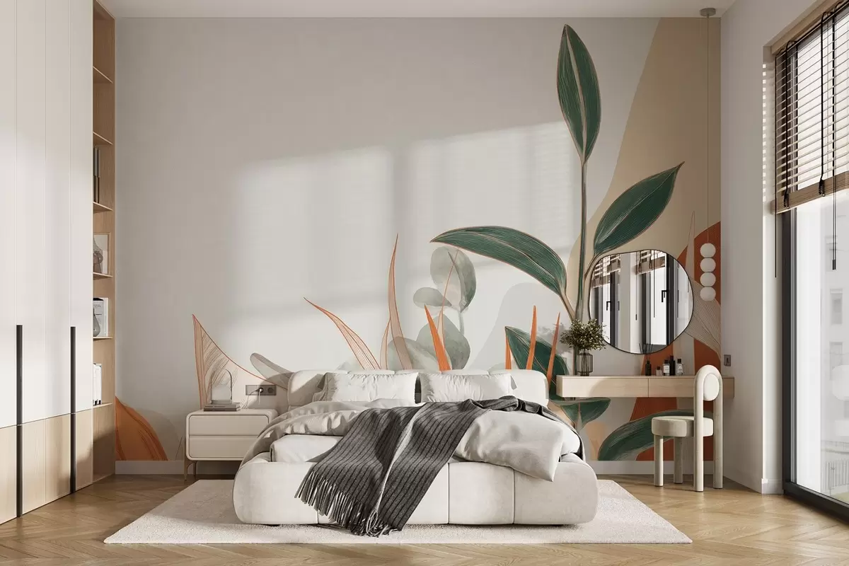 Papel tapiz Hojas en tonos beige y verde Nr. w09101