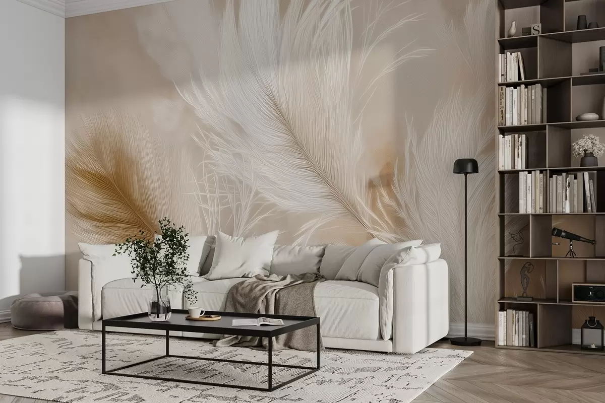 murales de pared Plumas voladoras sobre fondo beige w09102
