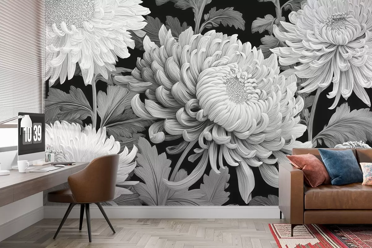 Papel tapiz Orquídeas grandes blancas y negras con hojas Nr. w09125v1