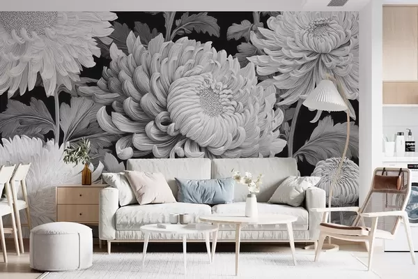 Papel tapiz Orquídeas grandes blancas y negras con hojas Nr. w09125v1