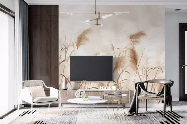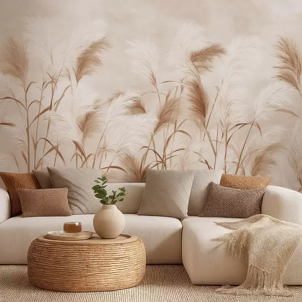 Papel tapiz Elegantes flores de hierba de la pampa en suaves tonos beige y lechosos Nr. w09150v1