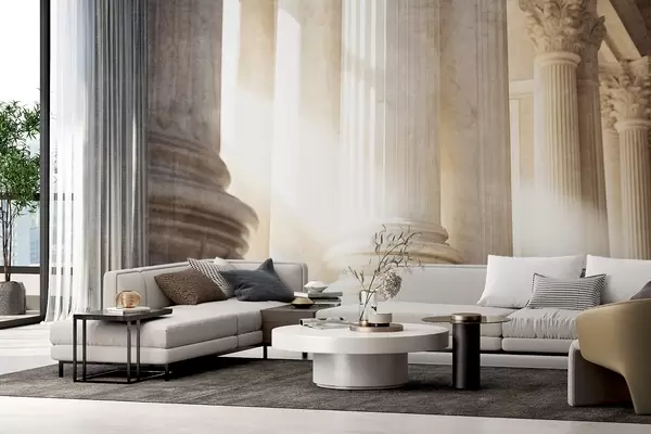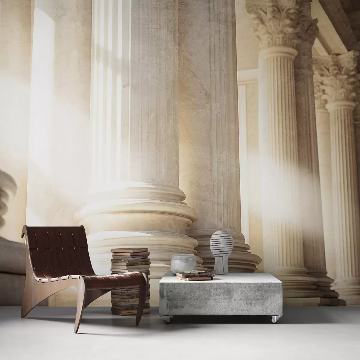 Papel tapiz Columnas, arquitectura clásica, diseño elegante, composición simétrica texturizada, paleta de colores neutros Nr. w09209