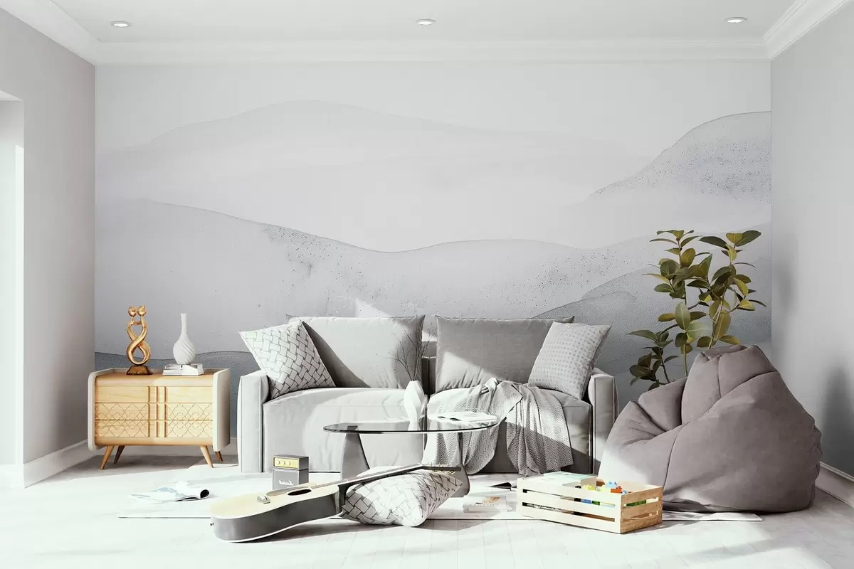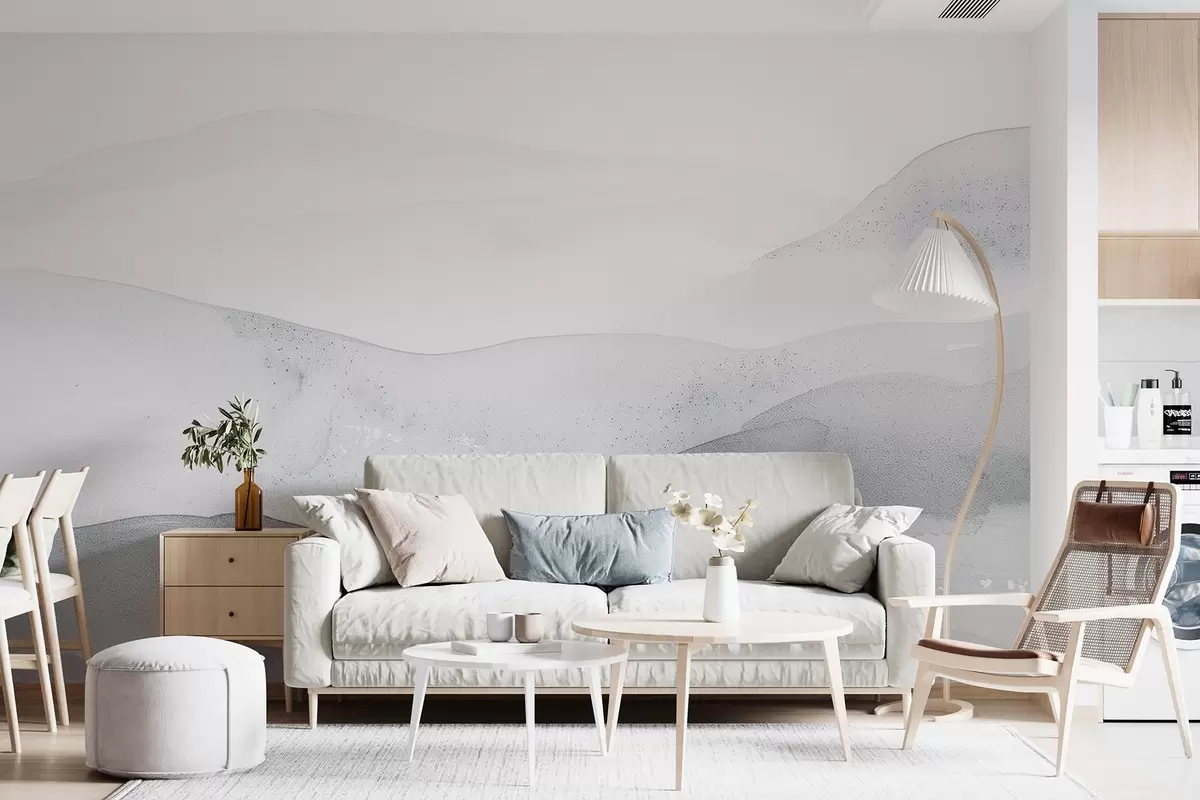 Papel tapiz Montañas neblinosas minimalistas en suaves tonos azules Nr. w09223v2