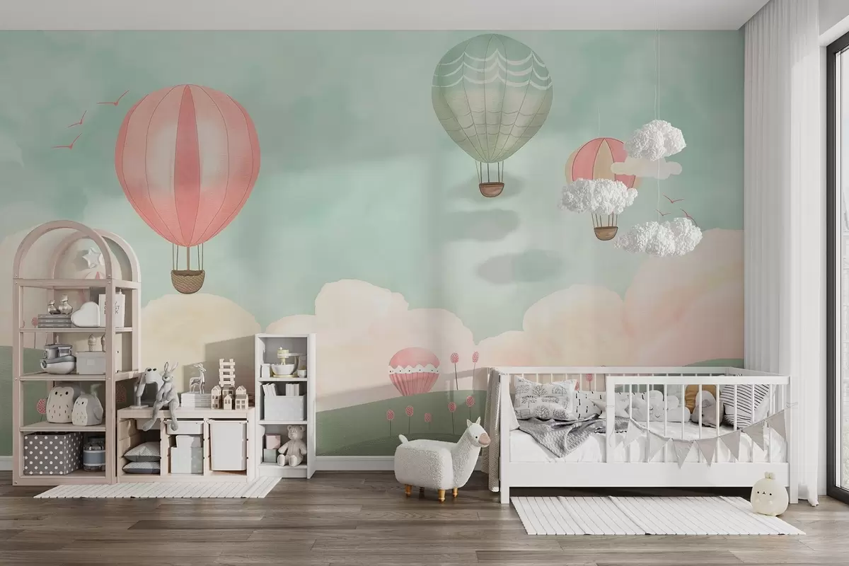 Papel tapiz Globos aerostáticos sobre colinas con nubes Nr. w09228