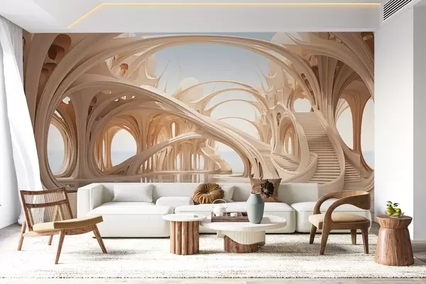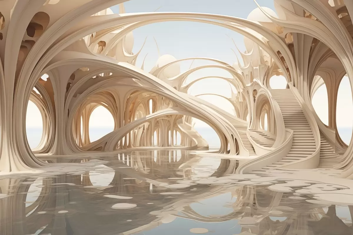 Papel tapiz Arquitectura de fantasía con arcos sobre el agua Nr. w09241