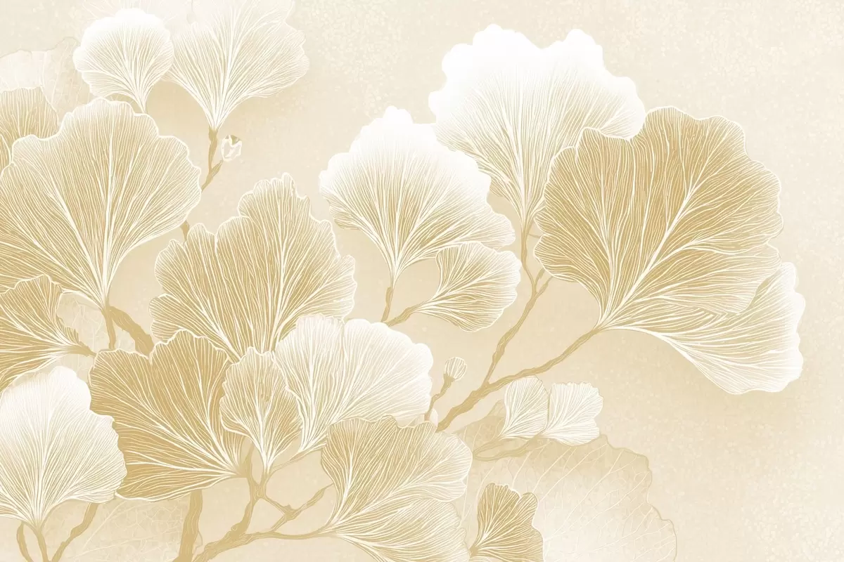 Papel tapiz Rama de hojas en tonos amarillos Nr. w09249v2