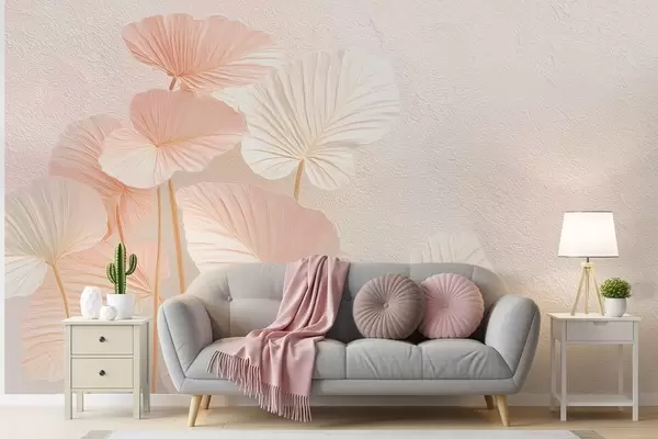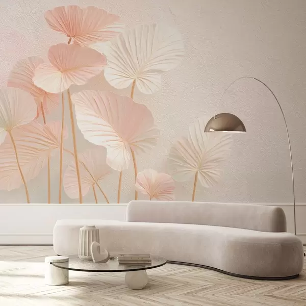 Papel tapiz Elegantes hojas tropicales grandes de delicado color rosa Nr. w09252v1