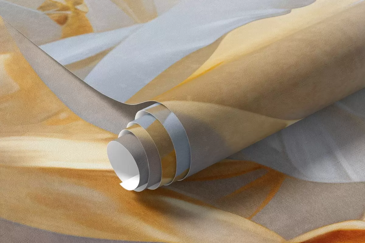 Papel tapiz Rosas blancas texturizadas con tallos y hojas amarillas, iluminación suave, fondo claro con formas florales difuminadas Nr. w09258
