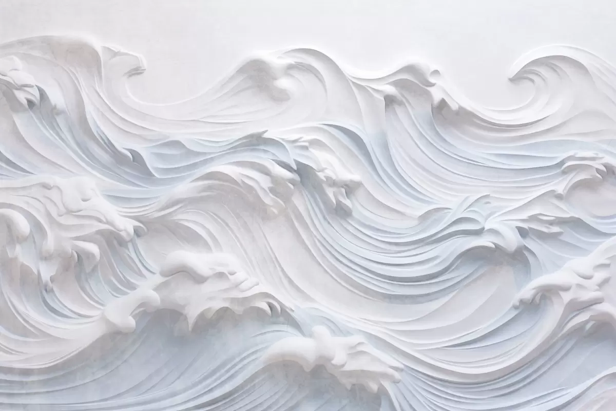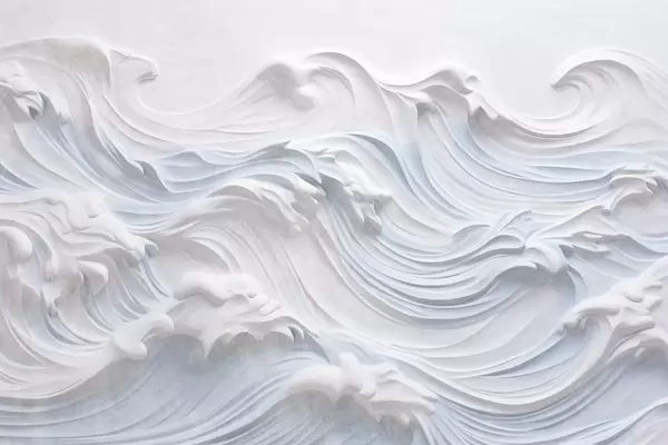 murales de pared Olas oceánicas abstractas de color blanco y azul claro con textura y espuma, que fluyen de izquierda a derecha, impresión dinámica y con textura w09266