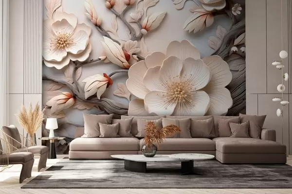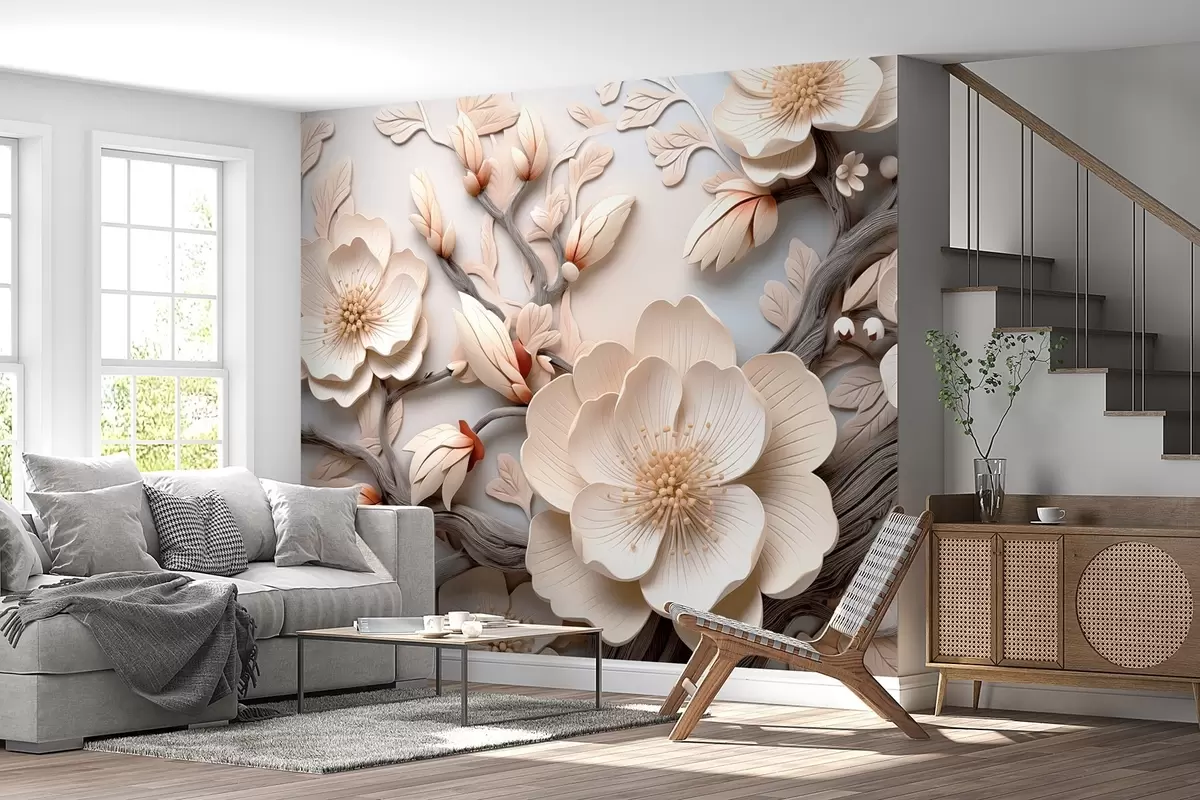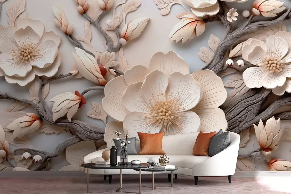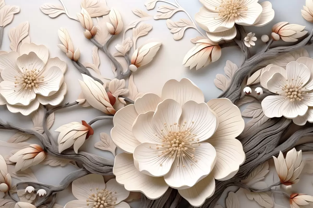 Papel tapiz Flores y ramas volumétricas en tonos claros Nr. w09272