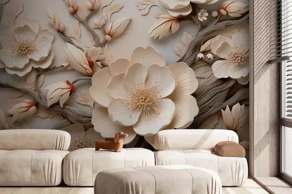 Papel tapiz Flores y ramas volumétricas en tonos claros Nr. w09272