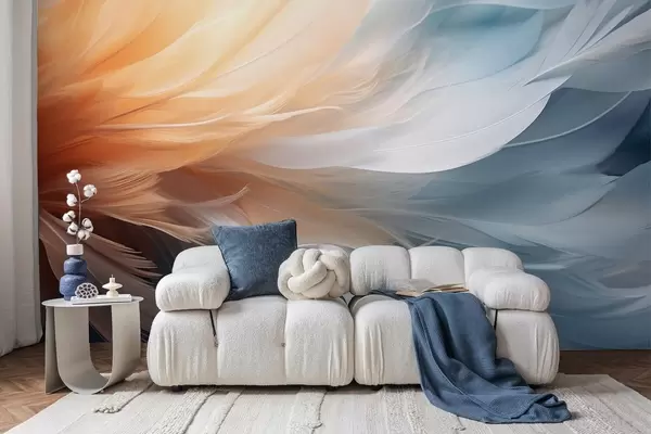 Papel tapiz Delicadas plumas en tonos degradados naranja y azul Nr. w09282