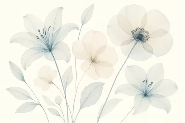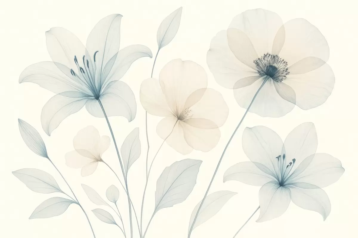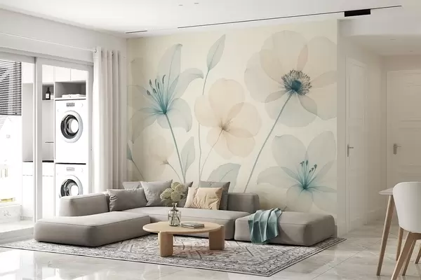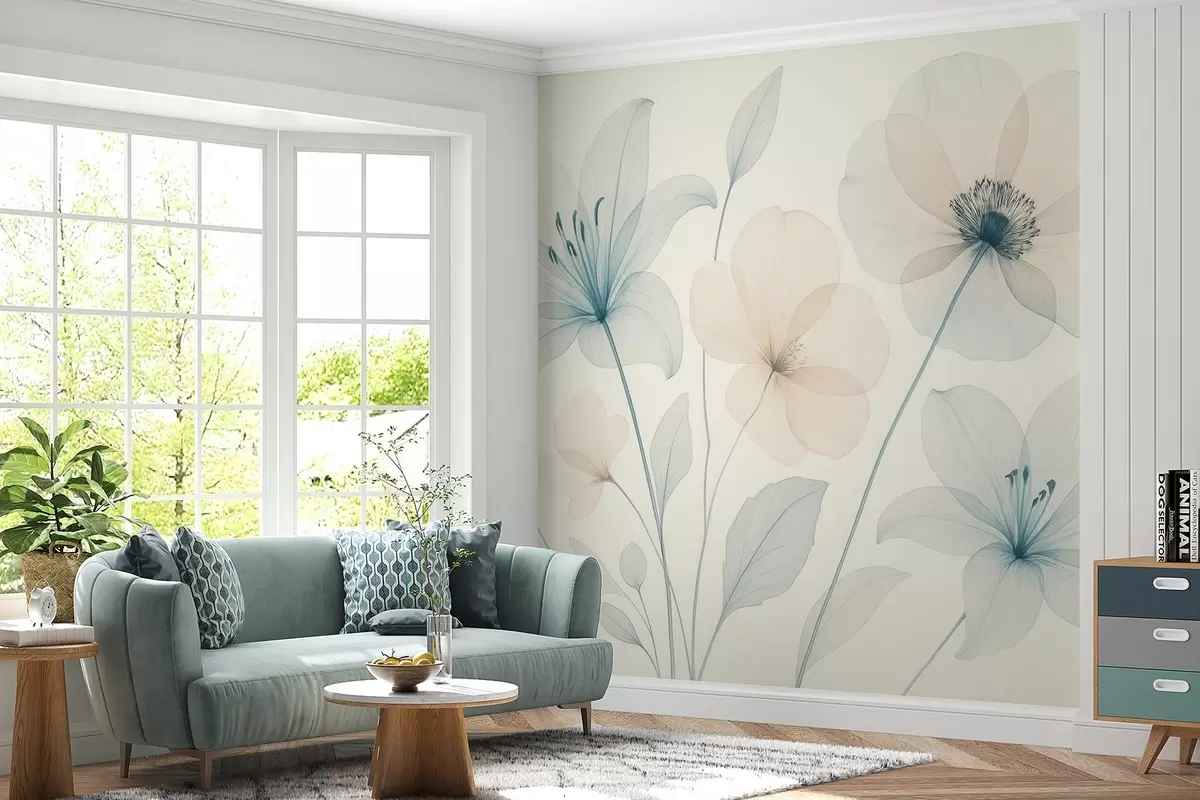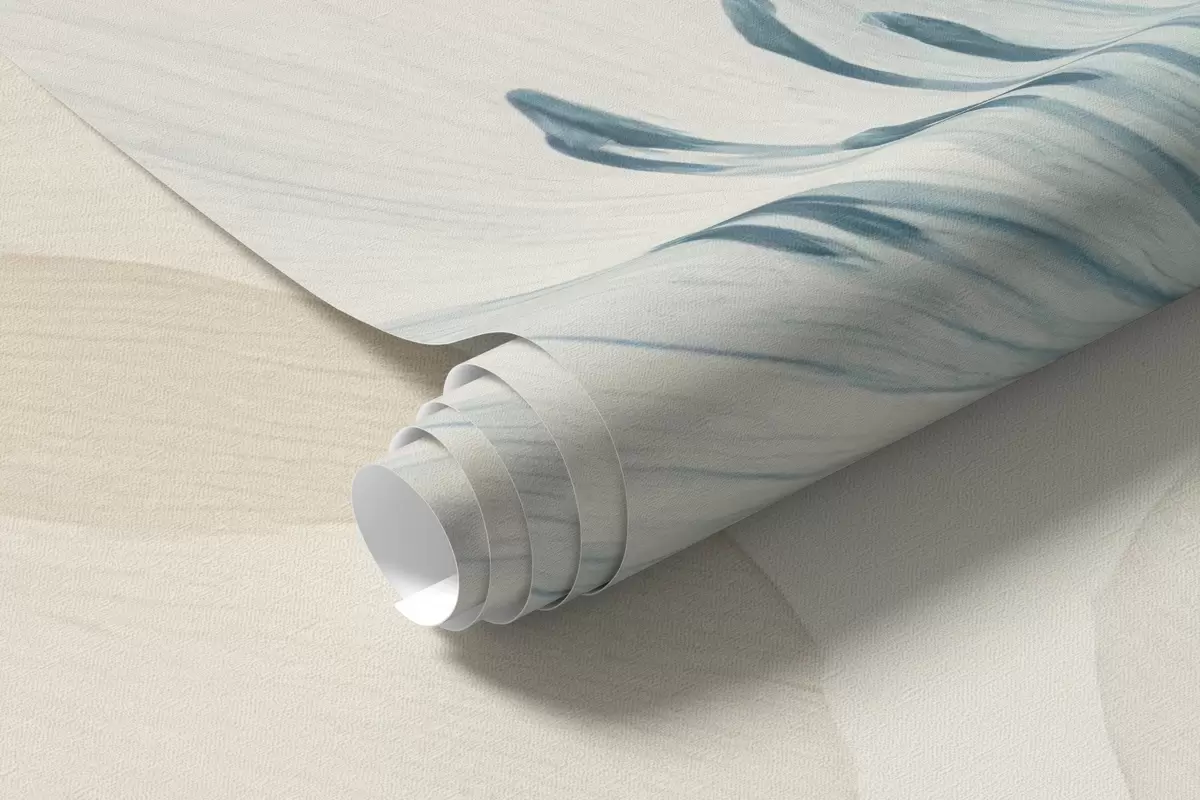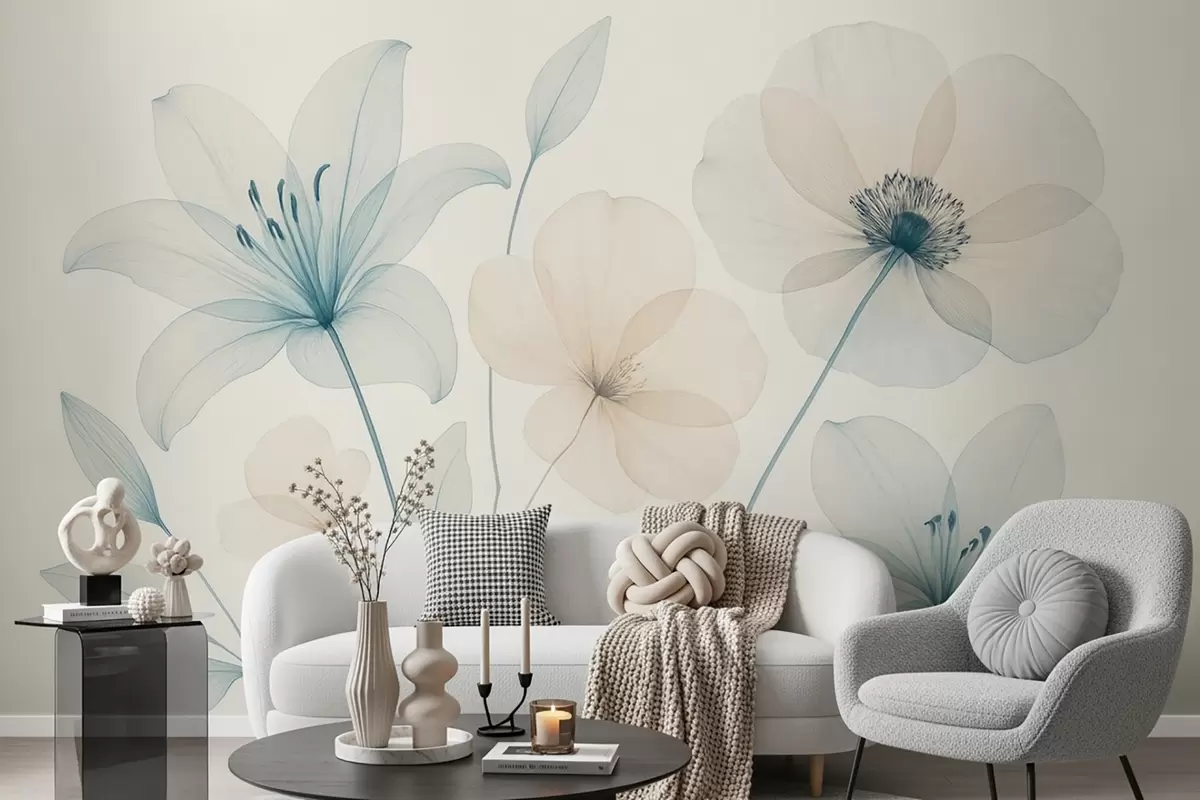 Papel tapiz Delicadas flores en estilo acuarela azul pastel y crema Nr. w09287