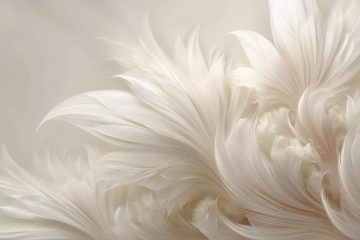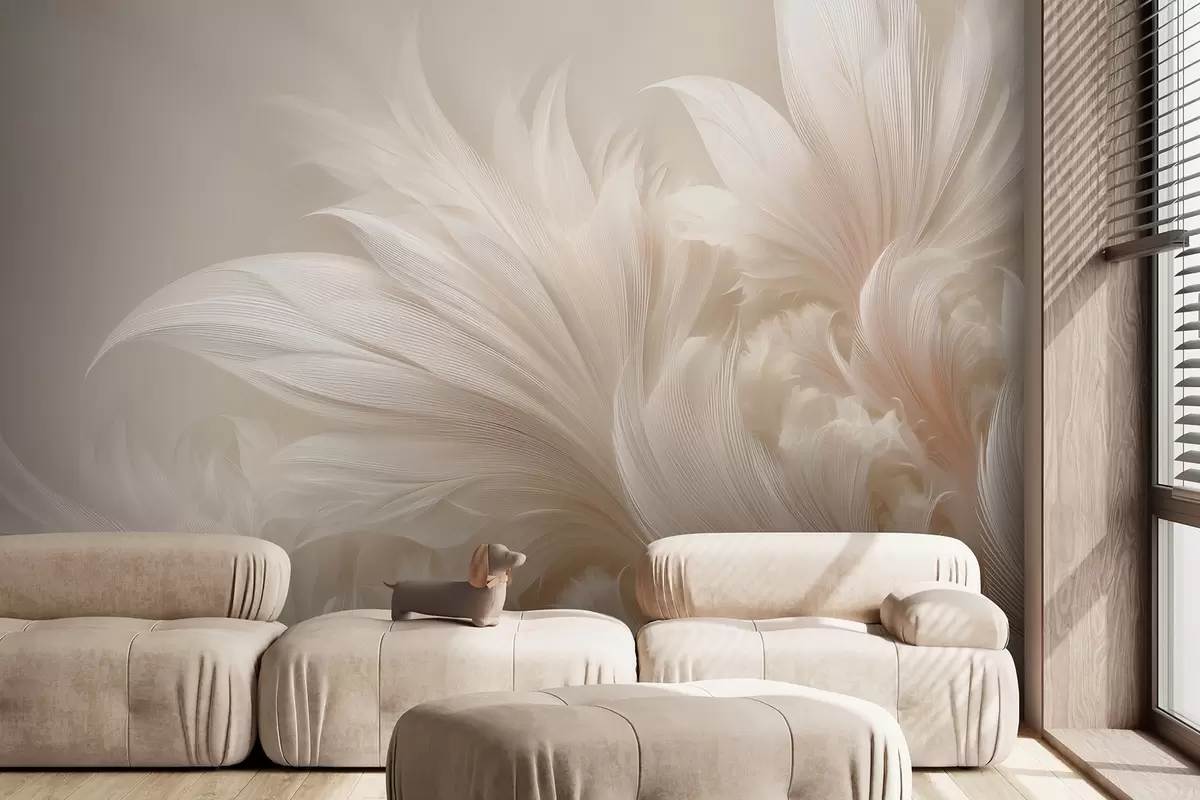 Papel tapiz Plumas ingrávidas en tonos crema vainilla Nr. w09302