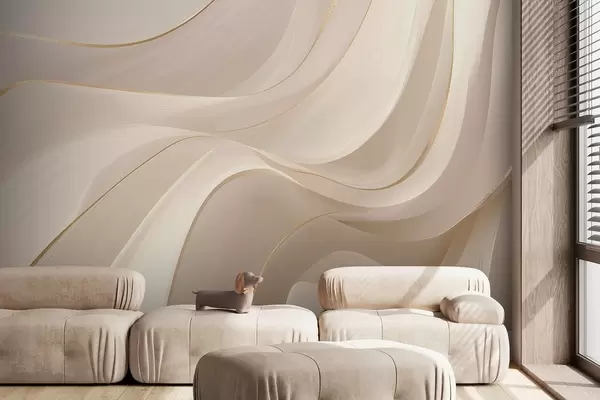 Papel tapiz Ondas fluidas con toques amarillos en luz cremosa Nr. w09303