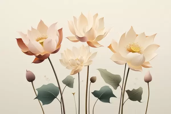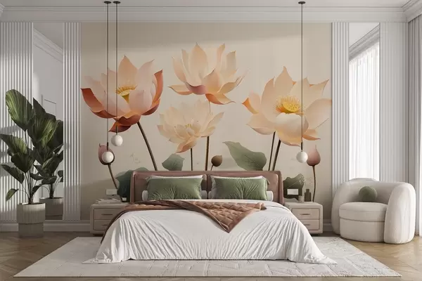 Papel tapiz Elegantes flores de loto en una suave paleta de colores pastel Nr. w09306