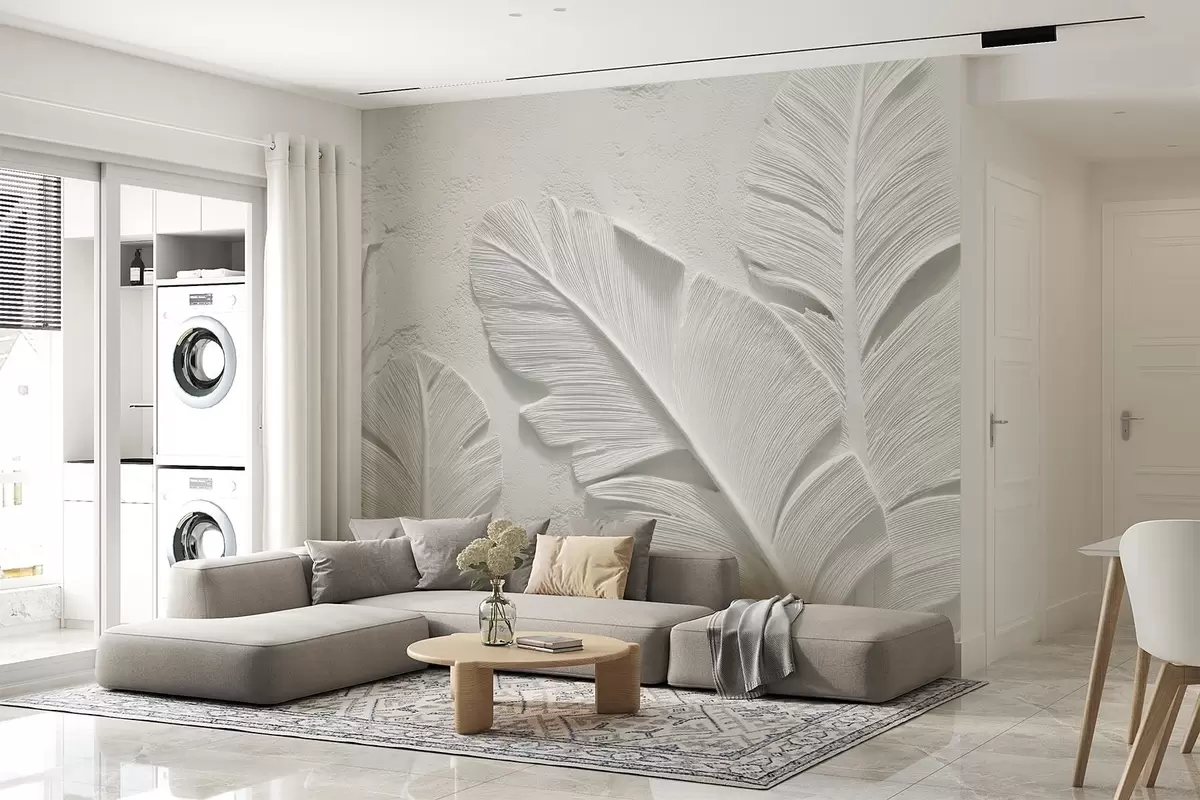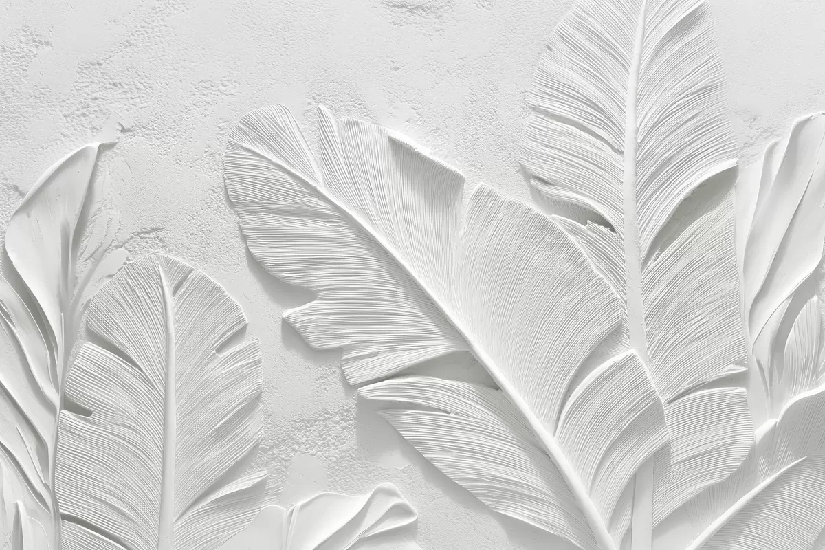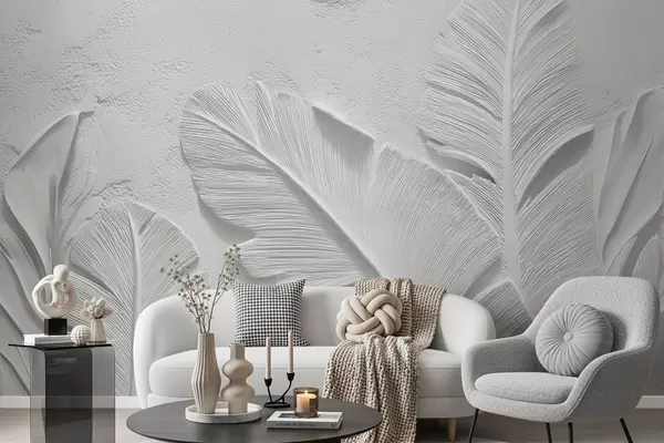 Papel tapiz Hojas grises texturizadas sobre un fondo con relieve de yeso falso Nr. w09307