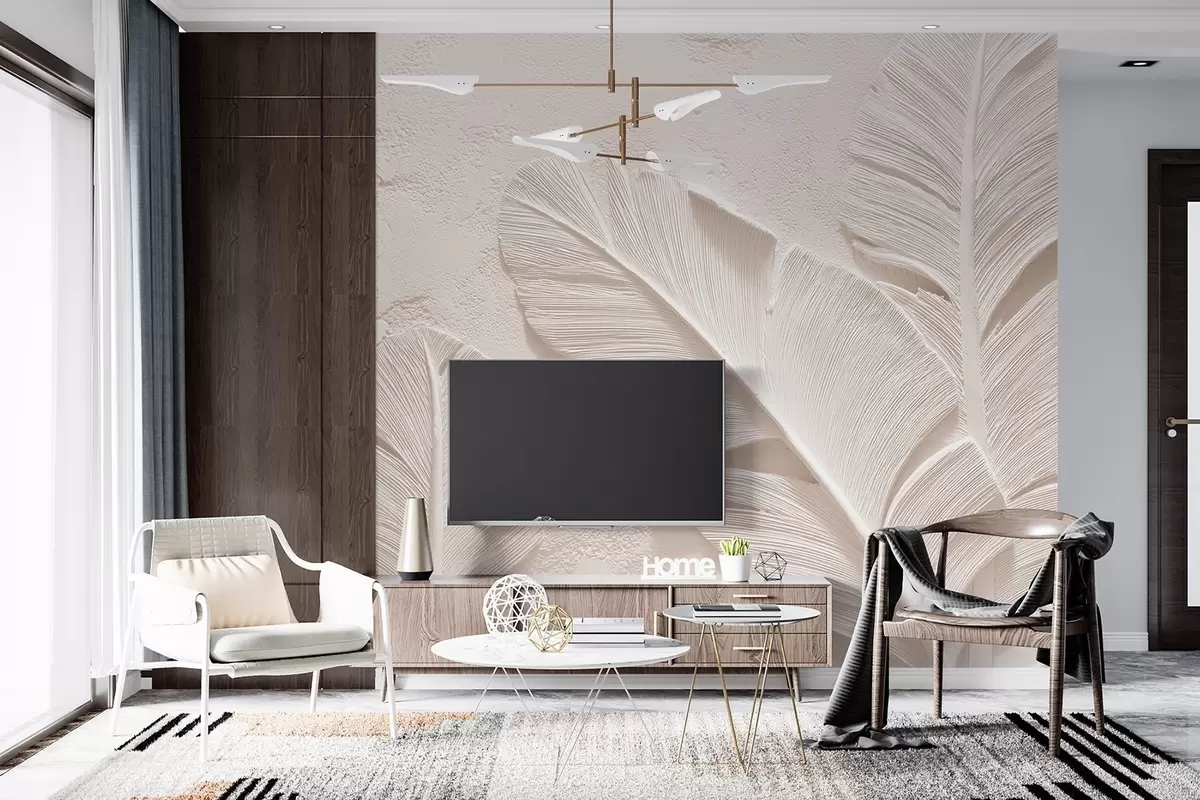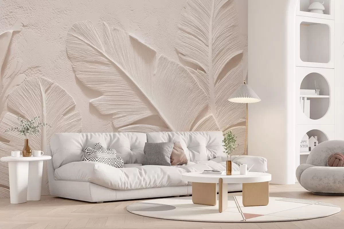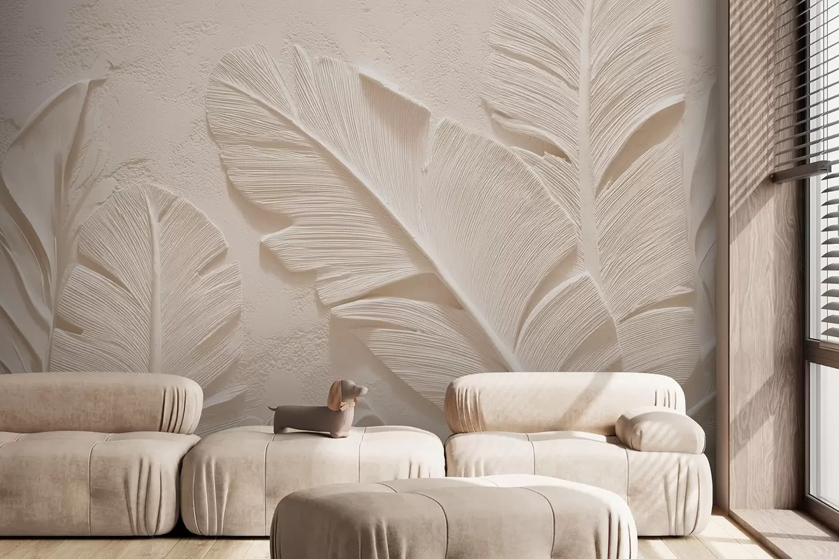 Papel tapiz Hojas en relieve en cálidos tonos beige-arena Nr. w09307v1