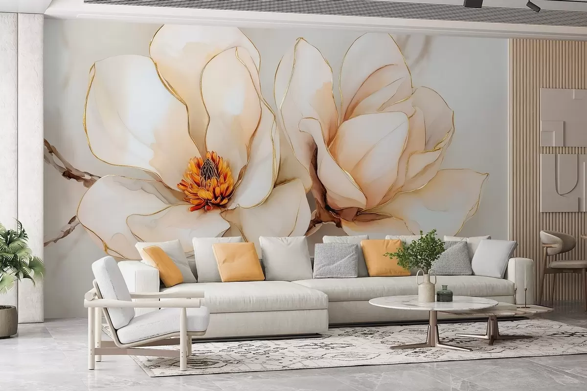 Papel tapiz Grandes flores de magnolia clara con pétalos suaves Nr. w09308