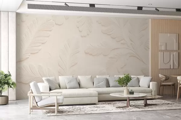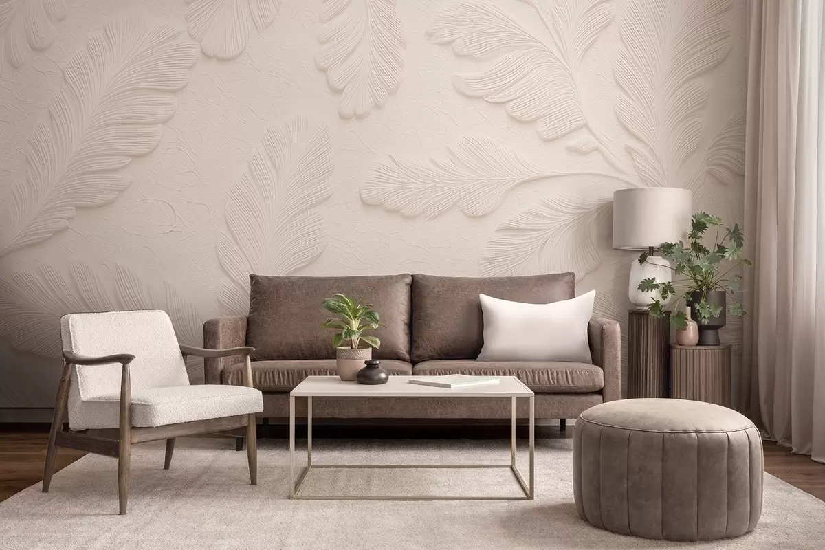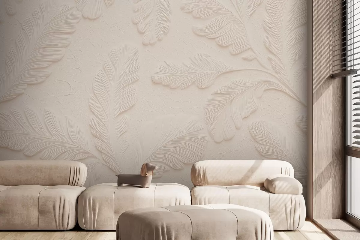 Papel tapiz Hojas en relieve sobre fondo claro con efecto craquelado Nr. w09309