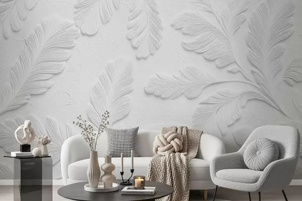 Papel tapiz Hojas en relieve de color gris con efecto de textura agrietada Nr. w09309v1