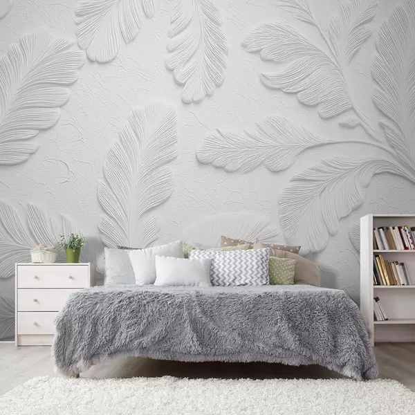 Papel tapiz Hojas en relieve de color gris con efecto de textura agrietada Nr. w09309v1