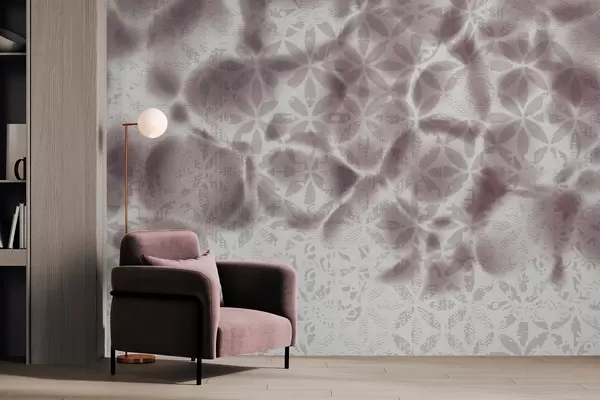 Papel tapiz Arte abstracto texturizado con estampado floral bordo, efecto difuminado y borroso, que crea una atmósfera suave y soñadora Nr. w09322v1