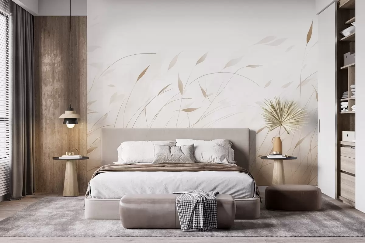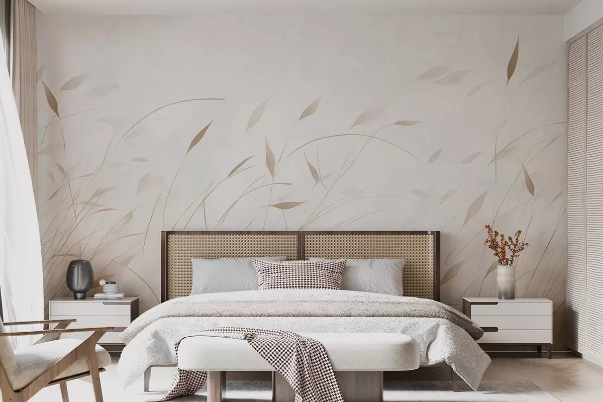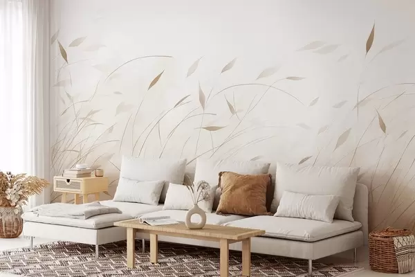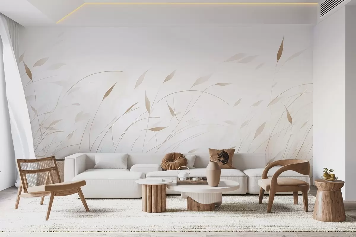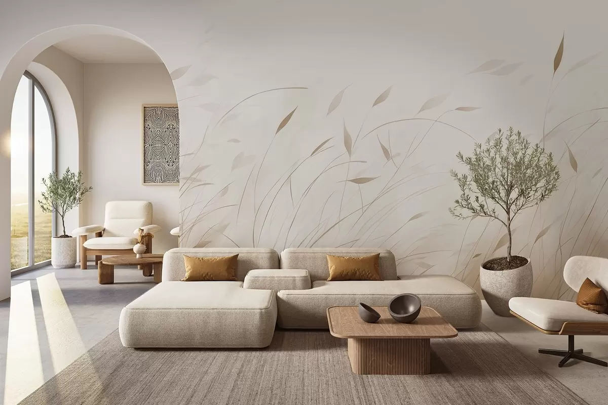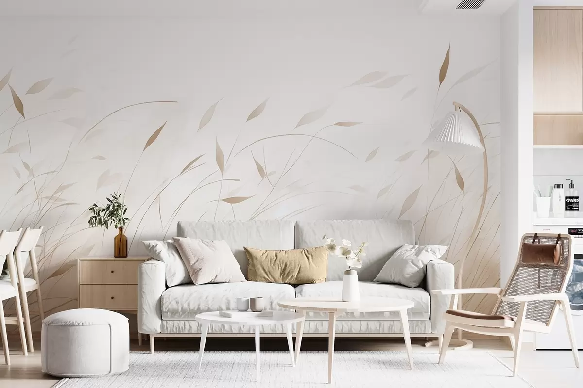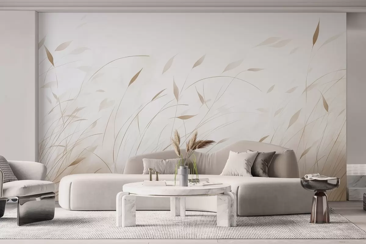 Papel tapiz Hierba al viento en estilo acuarela en tonos beige Nr. w09331v1