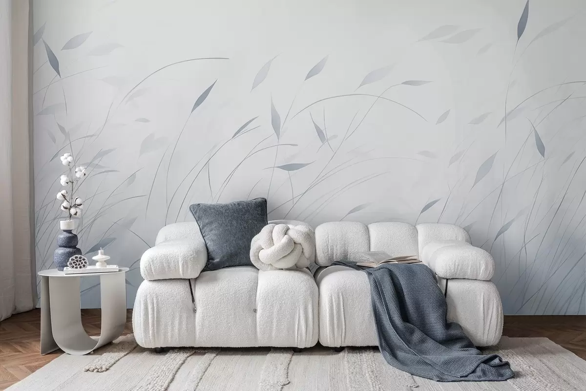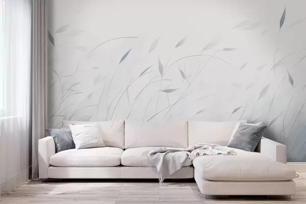 Papel tapiz Hierba al viento en estilo acuarela en tonos azules Nr. w09331v2