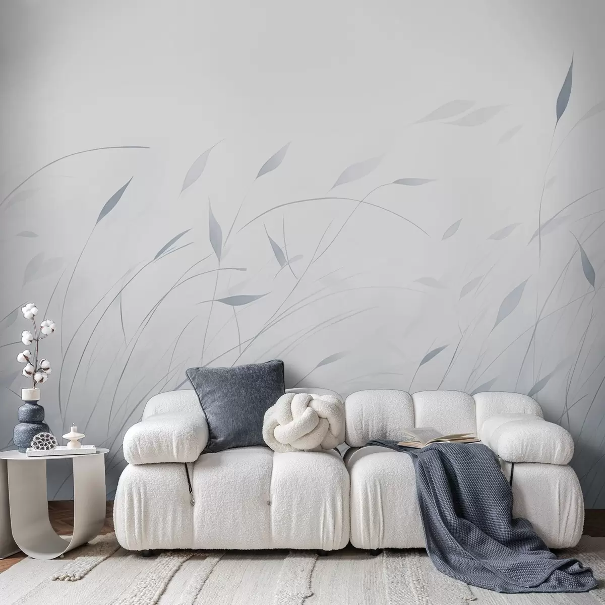 Papel tapiz Hierba al viento en estilo acuarela en tonos azules Nr. w09331v2