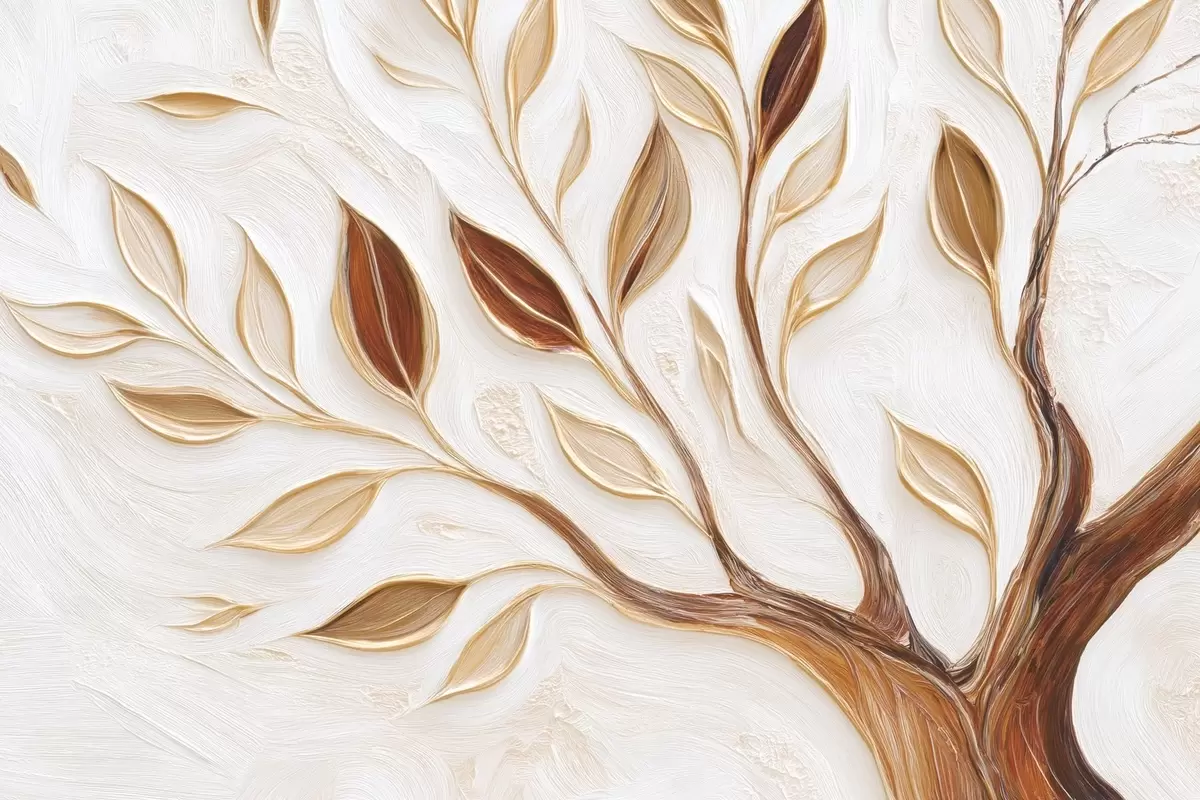 Papel tapiz Árbol decorativo con hojas e imitación de fondo texturado Nr. w09349
