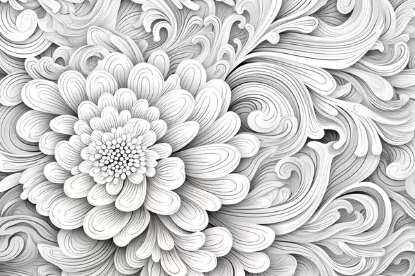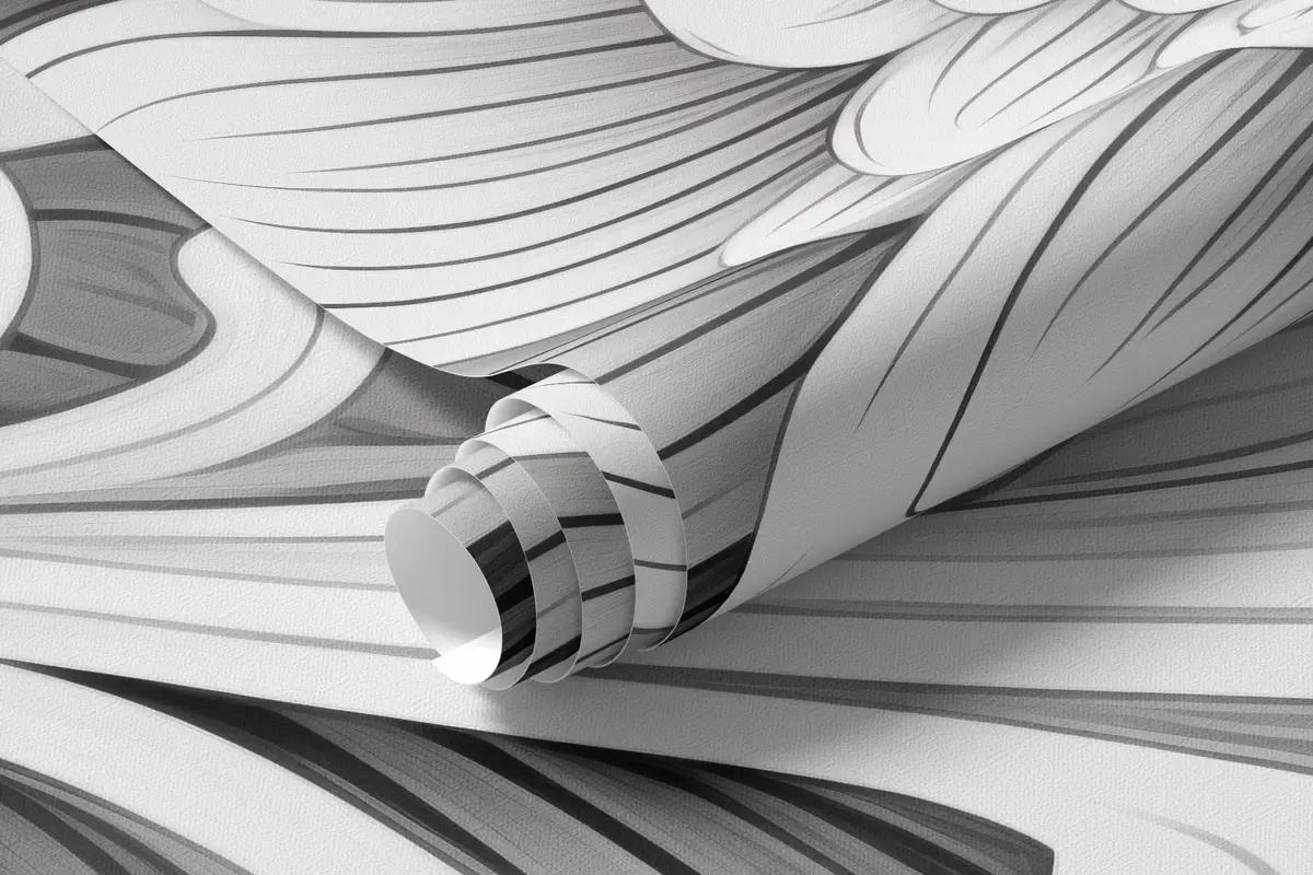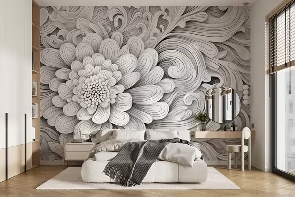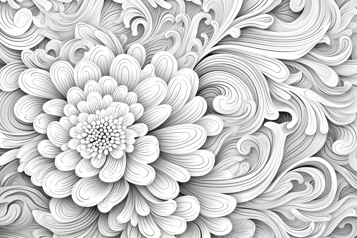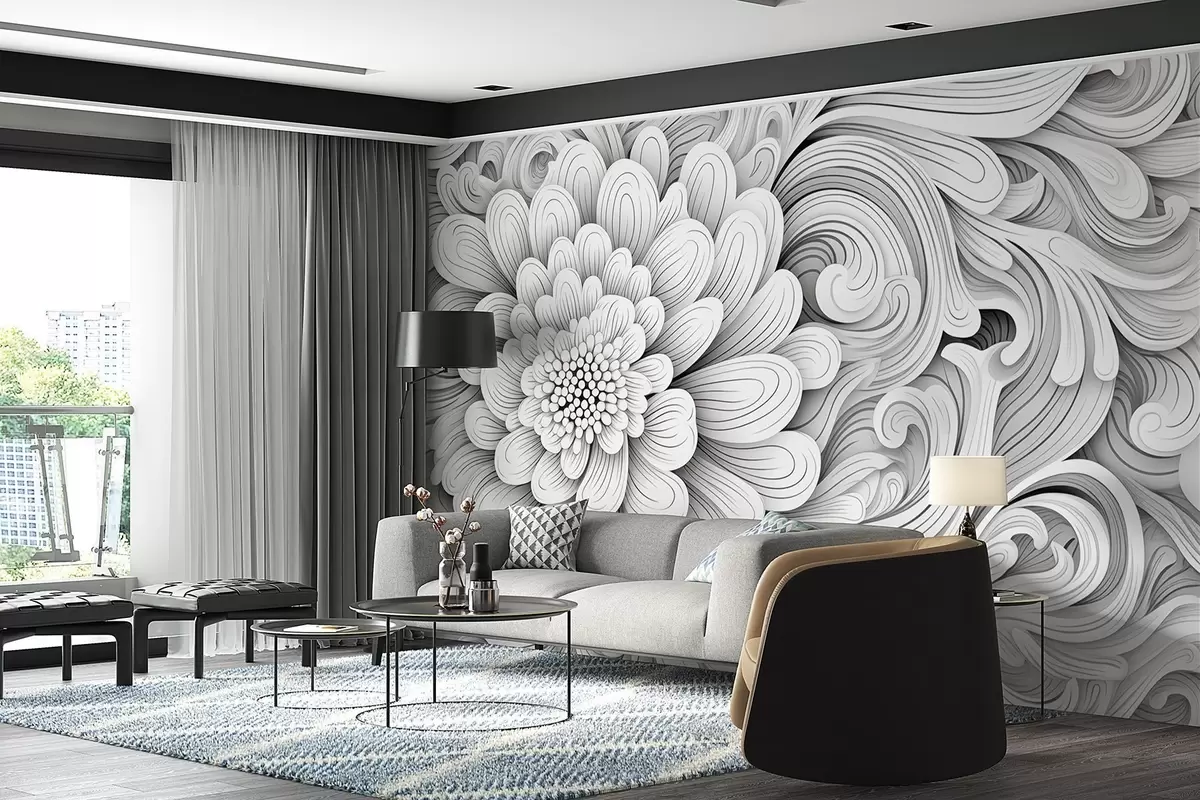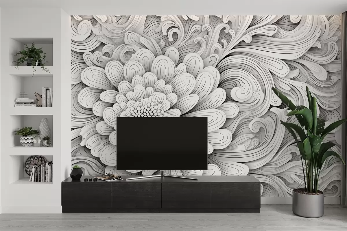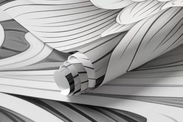 Papel tapiz Motivo decorativo en blanco y negro en forma de flor y remolinos Nr. w09355