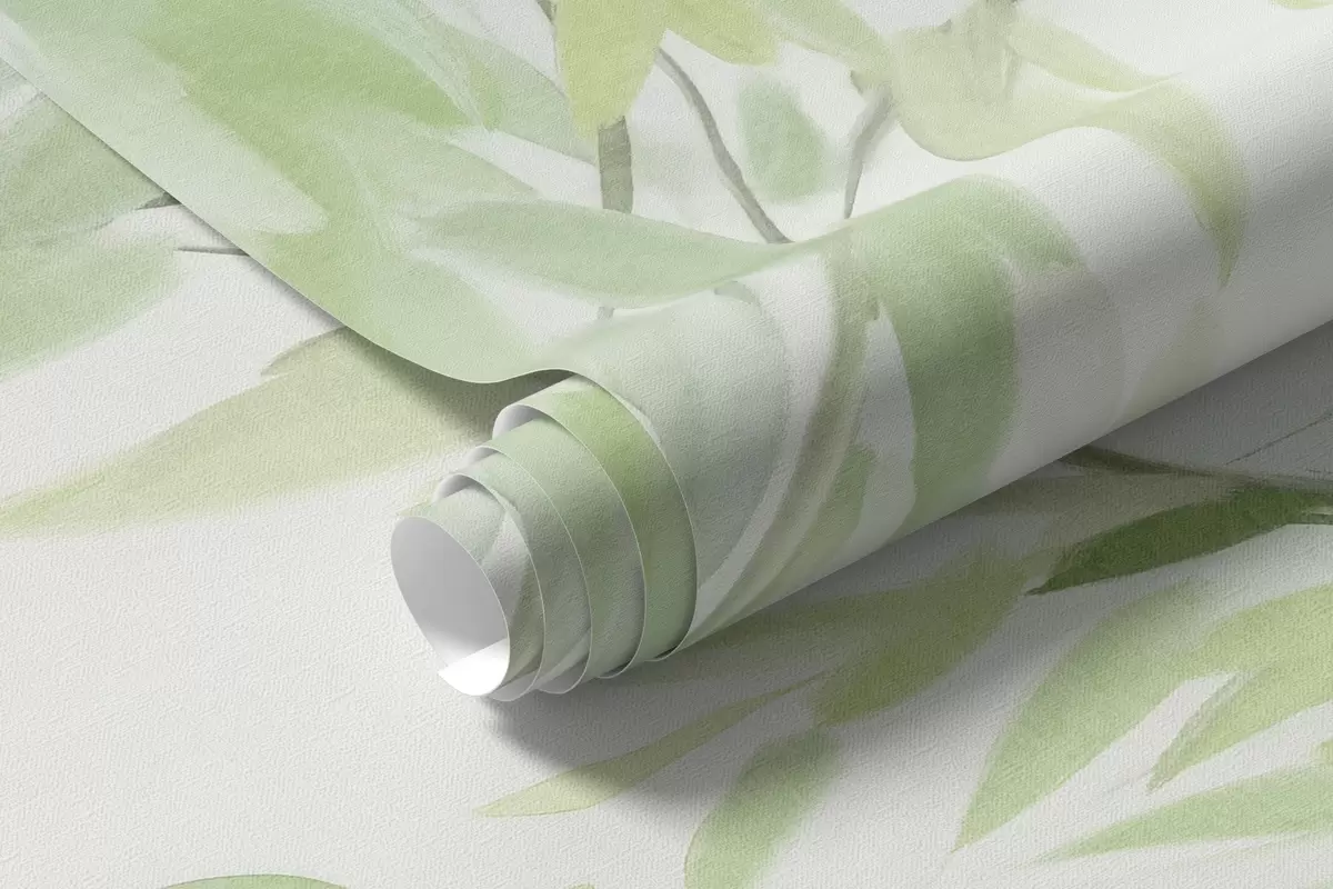 Papel tapiz Ramas de sauce llorón con hojas verdes colgando, pinceladas suaves y delicadas, estilo de pintura acuarela Nr. w09365