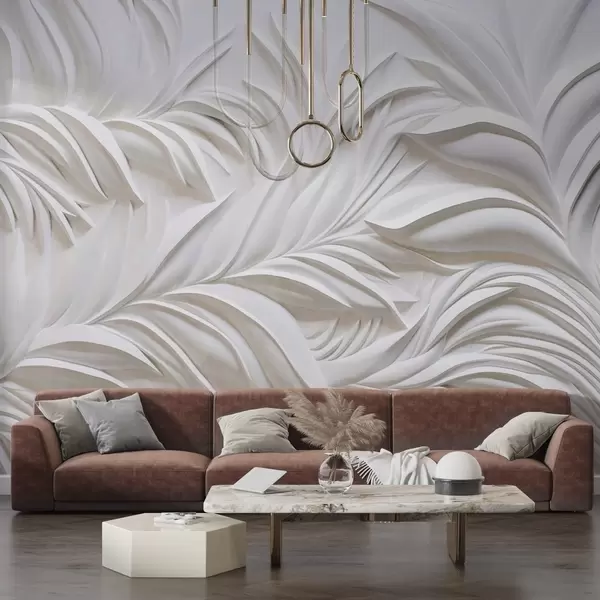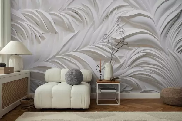 Papel tapiz Textura abstracta de hojas blancas y elementos florales, estética minimalista Nr. w09378