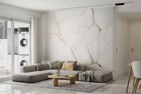 Papel tapiz Imitación de mármol con finas grietas y vetas amarillas Nr. w09390