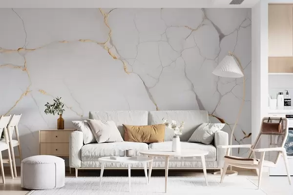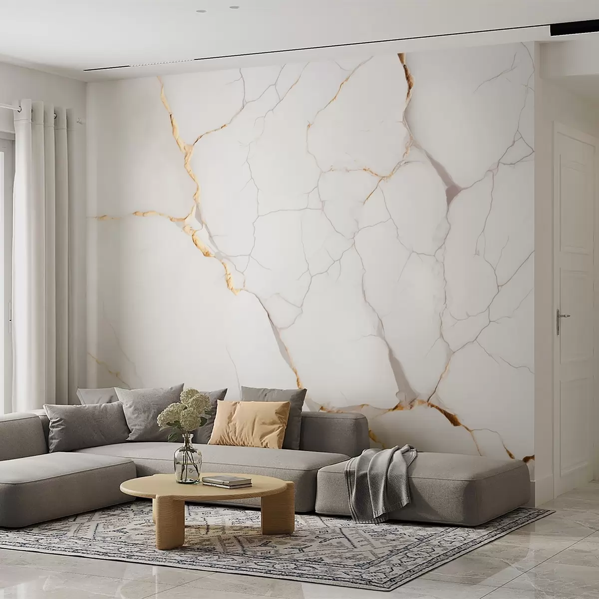 Papel tapiz Imitación de mármol con finas grietas y vetas amarillas Nr. w09390