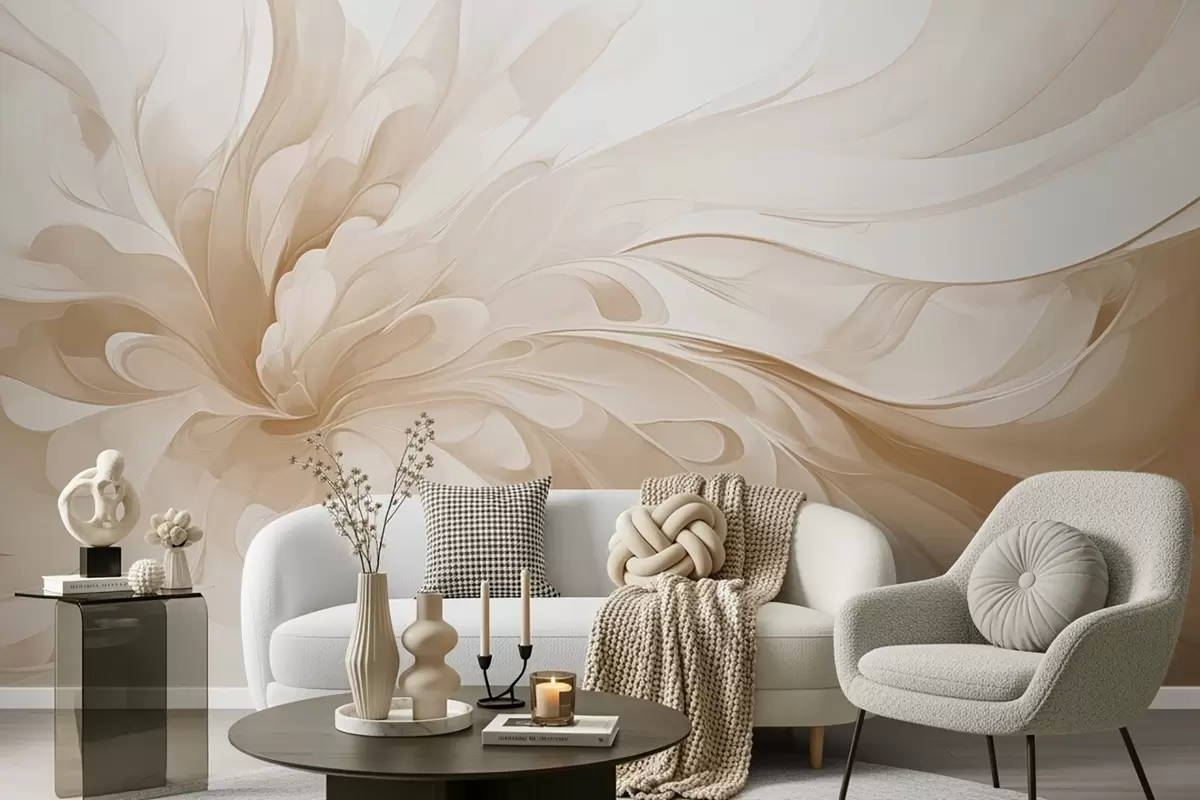 Papel tapiz Suave remolino abstracto en tonos beige Nr. w09392v1
