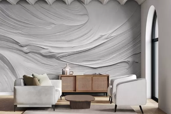 Papel tapiz Imitaciones de pinceladas abstractas de pintura blanca con textura y un patrón en espiral, composición moderna minimalista y neutra Nr. w09394
