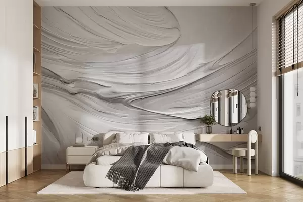 Papel tapiz Imitaciones de pinceladas abstractas de pintura blanca con textura y un patrón en espiral, composición moderna minimalista y neutra Nr. w09394