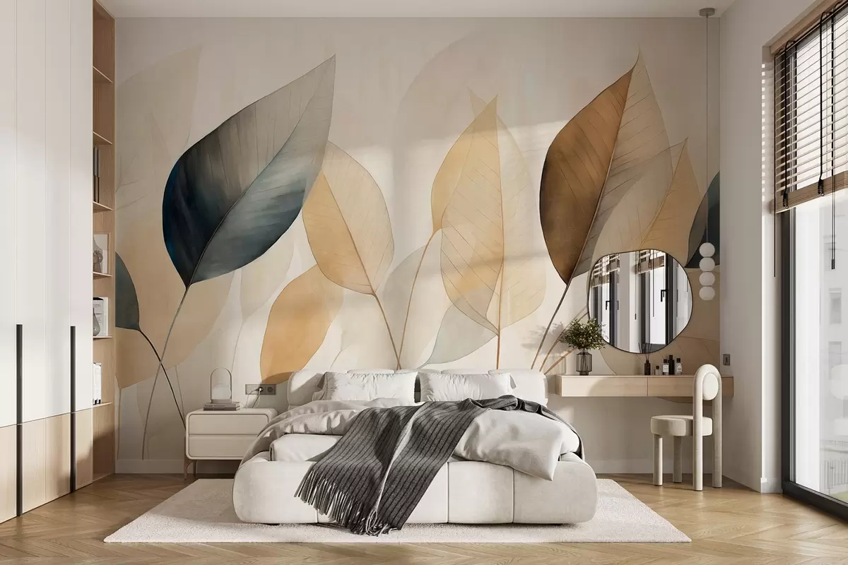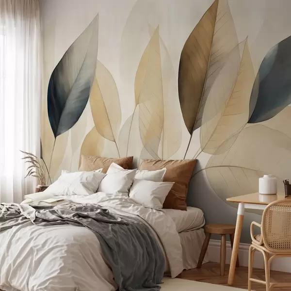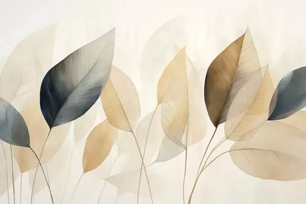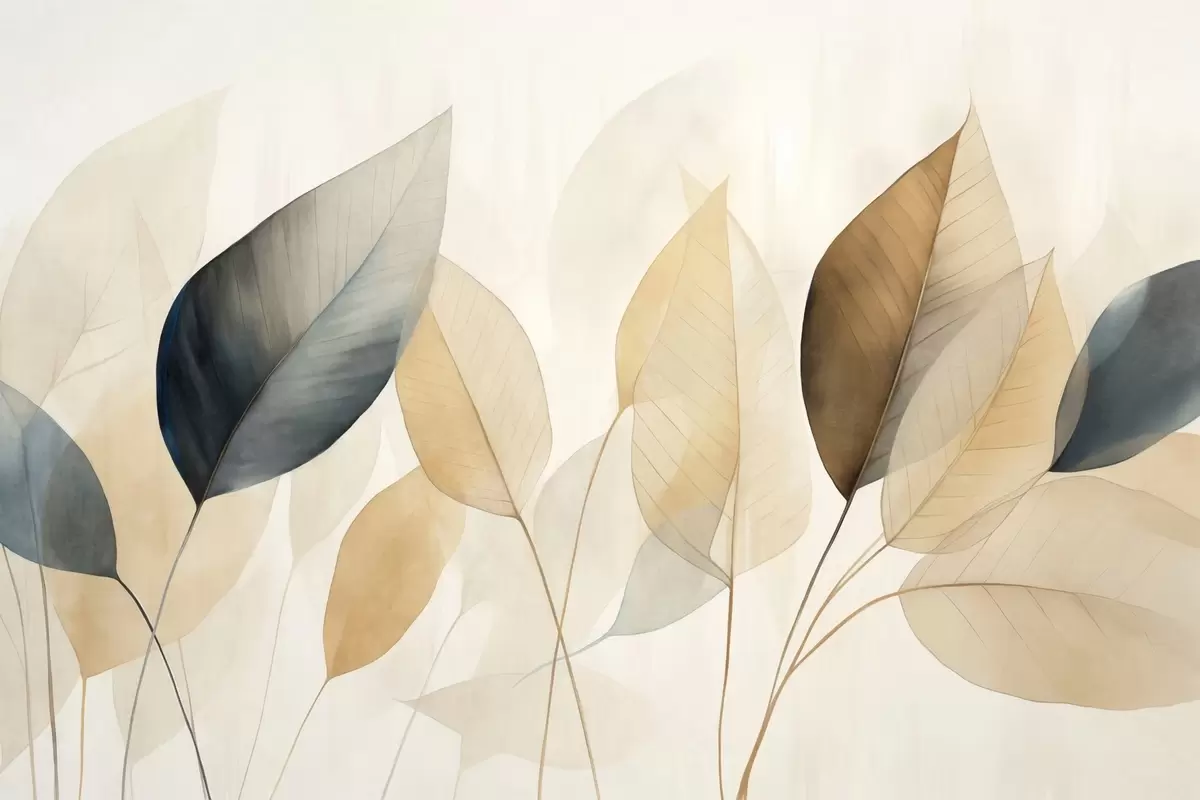 Papel tapiz Pintura texturizada imitación de hojas en tonos marrones, amarillos y grises, con delicadas venas y tallos Nr. w09400