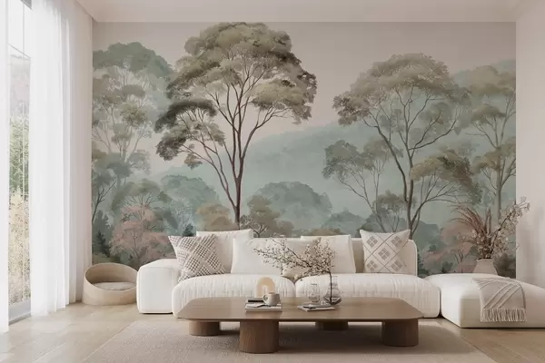 Papel tapiz Mañana brumosa en el bosque en estilo acuarela Nr. w09405