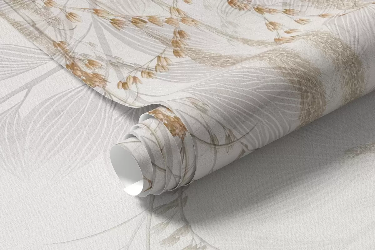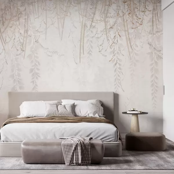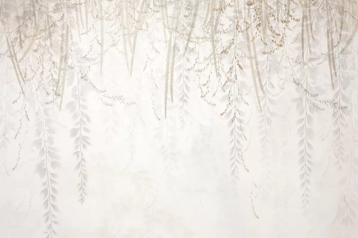 Papel tapiz Hojas y ramas ligeras colgantes en tonos beige Nr. w09433
