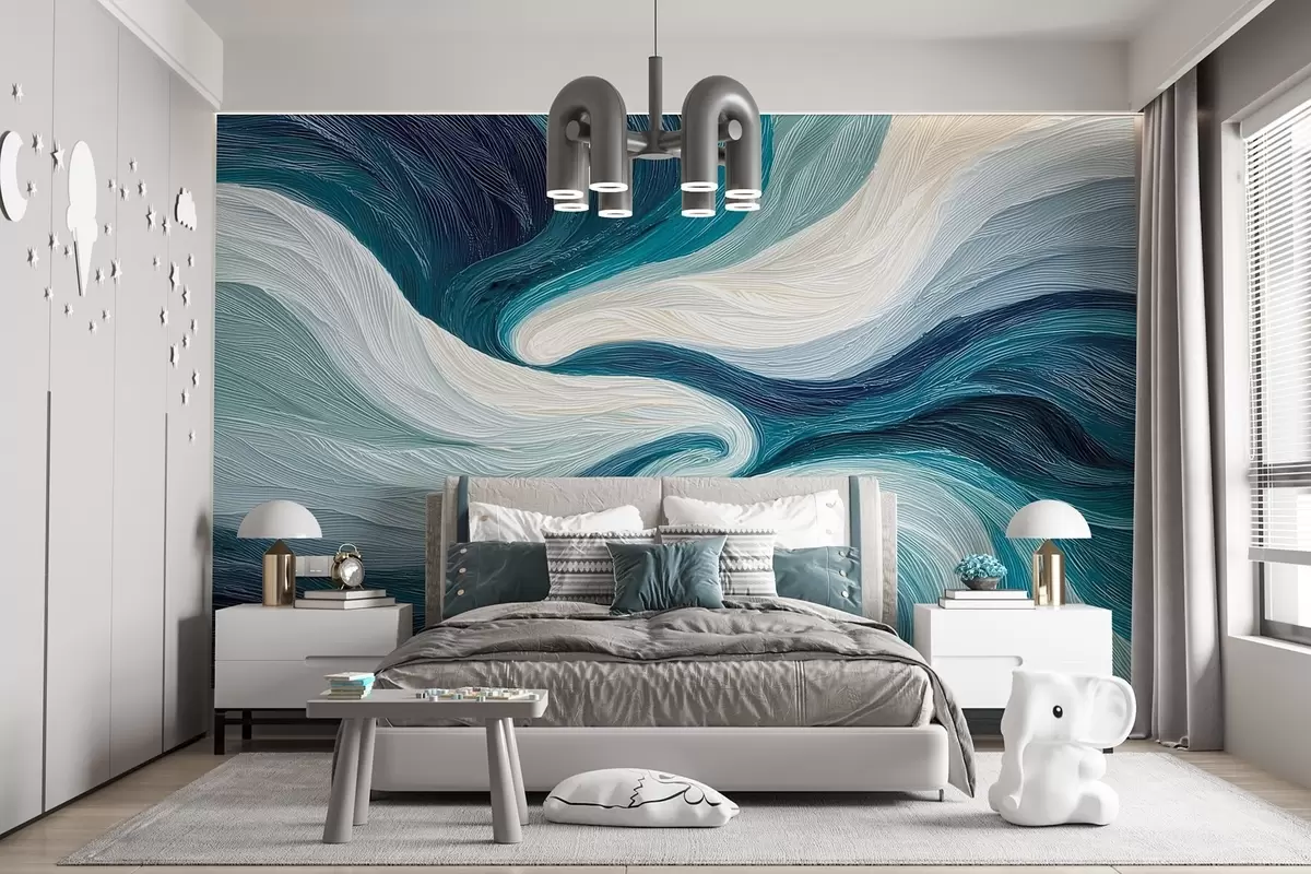 Papel tapiz Agua y viento abstractos en tonos fríos Nr. w09453