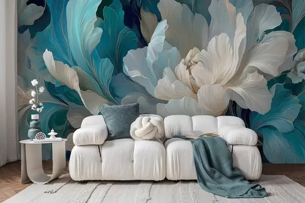 Papel tapiz Delicada peonía volumétrica en una paleta de colores fríos Nr. w09456